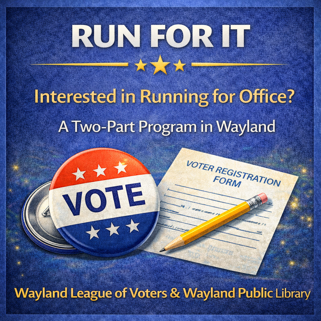 Hosted by the LWV and Wayland Public Library, the first session, “Run for It: The Town Office Experience, “was held Oct. 23. The panel discussion, featuring experienced elected officials, covered what it’s like to run for and hold office. The second part, a Zoom session scheduled for Jan. 7, will cover the “nuts and bolts” of running for office.