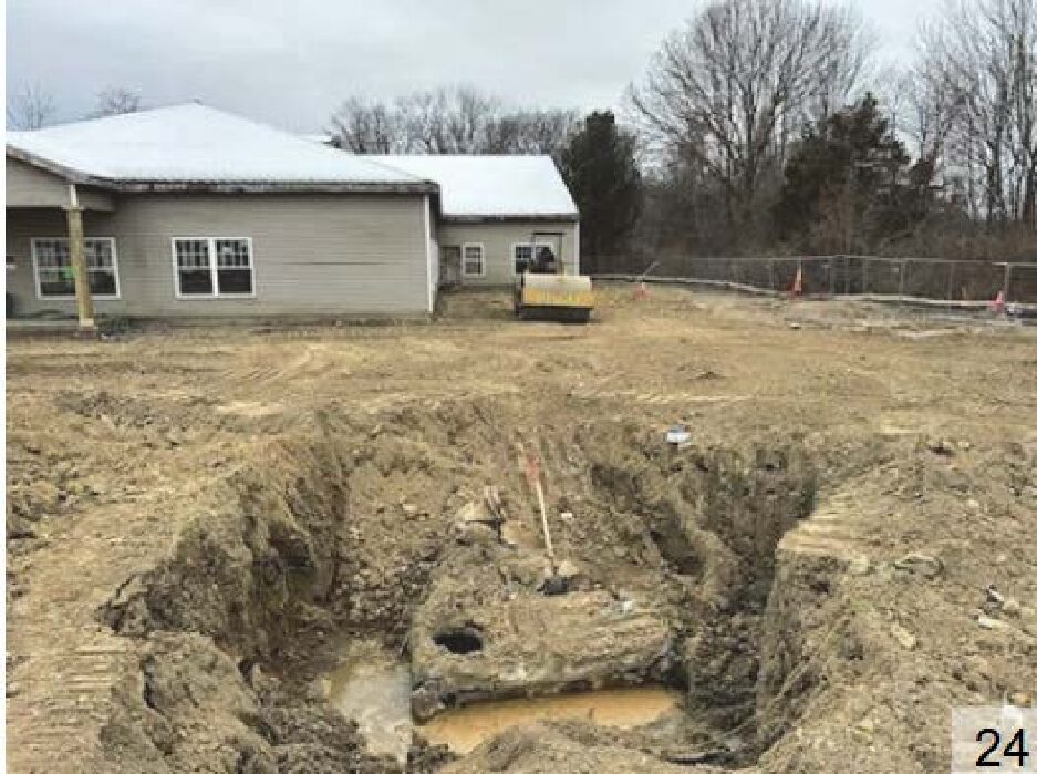 The current meeting focused on recent activities triggered during construction. On January 30, 2024, contractors uncovered a small underground concrete tank and adjacent piping system. Though initially believed to be a septic system, the tank’s contents included petroleum hydrocarbons and measurable levels of PFAS, specifically PFOS. Soil samples surrounding the structure confirmed contamination, prompting its eventual clean up, removal and disposal as concrete rubble by Tower Construction.
