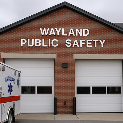 12:12 a.m. to 9:52 a.m. Numerous calls were received about fallen trees blocking roadways and/or wires down, at Wayland High School, Sears Road, Adams Lane, Sherman’s Bridge Road, Dudley Road, Glezen Lane, Garden Path, and Concord Road .