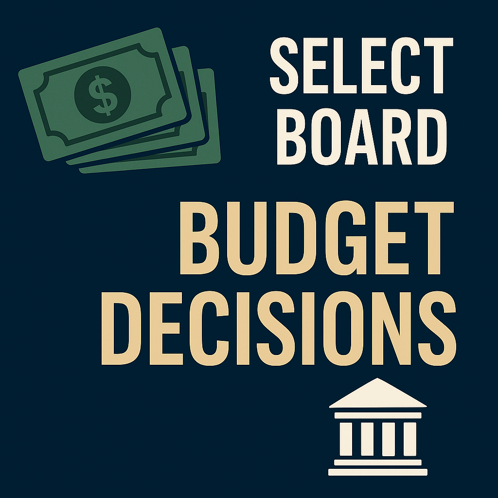The boardโ€™s actions ease short-term pressure but tie the town closely to FY27 forecasts. Key budget guidance from Town Manager Michael McCall is due in December, when the Finance Committee begins its work.