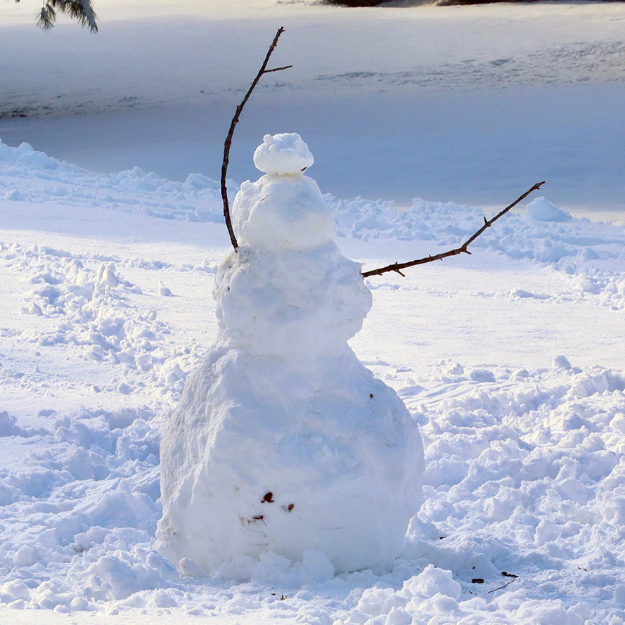A snowman seems to be directing traffic on Nolan Farm Road.