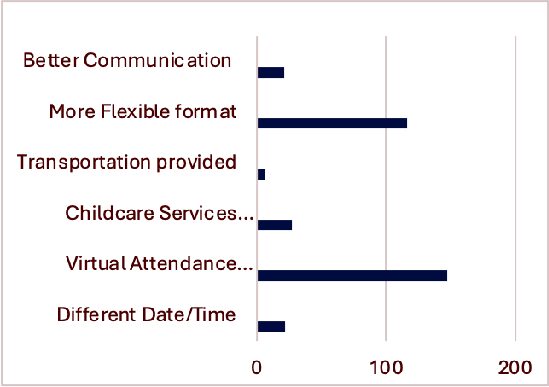 Graph A demonstrates that virtual attendance options or remote voting is very popular — but remote voting requires state legislation. Residents interested in remote voting can advocate for it by contacting Sen. Becca Rausch and Rep. Jack P. Lewis, chairs of the Joint Committee on Municipalities and Regional Government.