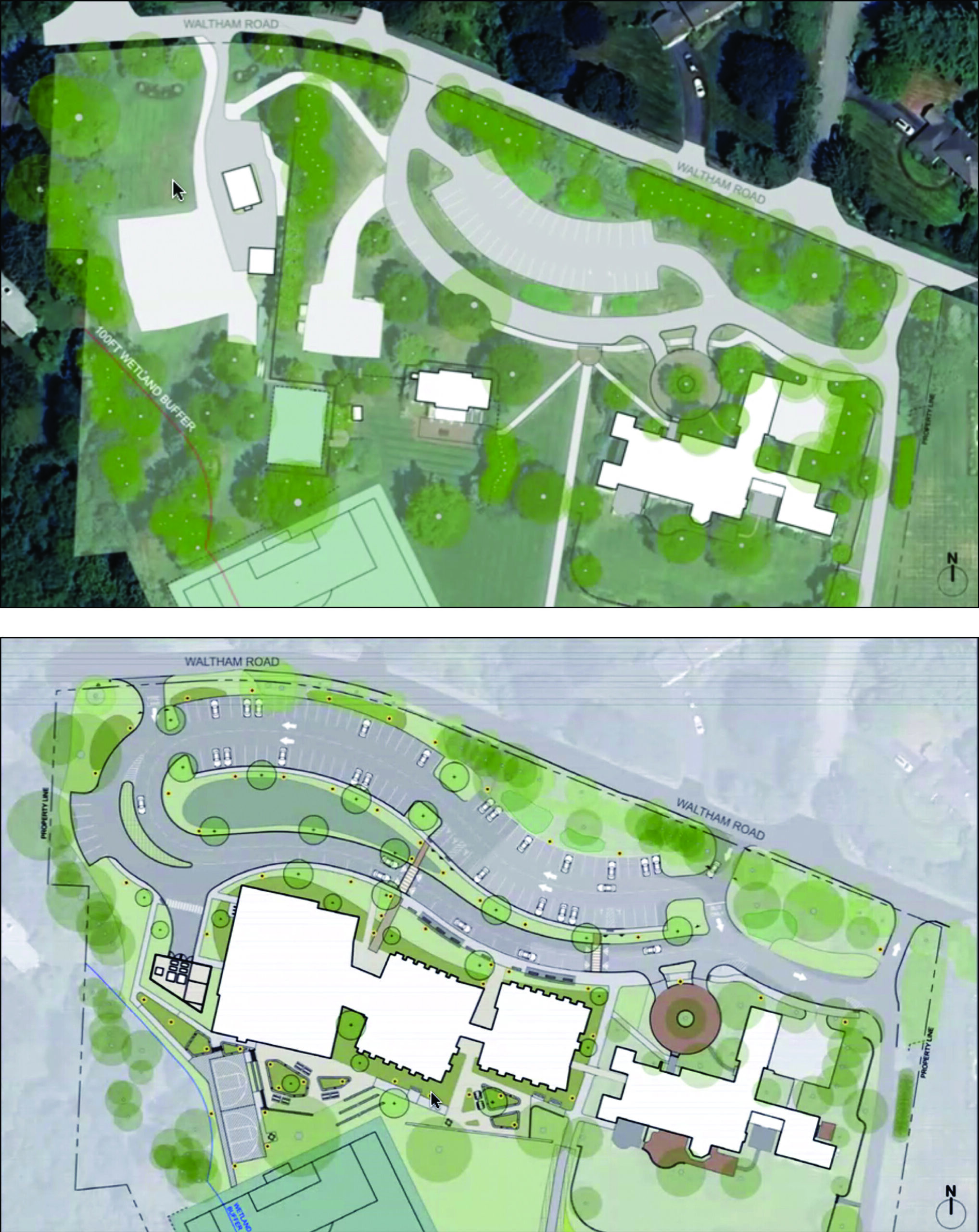 The planning board’s questions and concerns focused on parking and traffic. Vice Chair Robin Borgestedt said she was concerned about the traffic on Waltham and Concord roads. She said she has experienced frequent backups in that area and felt that a five-fold student population increase could exacerbate the problem. According to Borgestedt, the traffic report did not address the impact on Lincoln Road and Route 117, not enough parking spaces for events, and no information was provided on potential traffic backups onto Waltham Road. She asked how many students took the bus. Borgestedt also pointed out that the submitted drawings failed to illustrate how the entire construction project fit into the site.